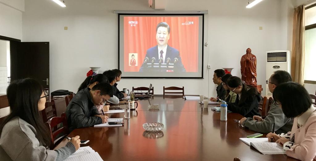中国共产党第十九次全国代表大会18日上午在北京人民大会堂开幕。习近平代表第十八届中央委员会向大会作了题为《决胜全面建成小康社会夺取新时代中国特色社会主义伟大胜利》的报告。76net必赢线路检测中心党委组织了党委理论学习中心组成员和部分学生党员集中收看了开幕会。