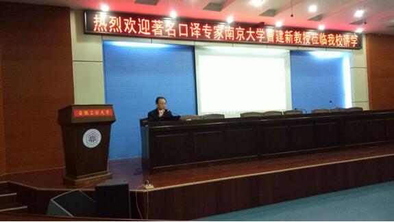 11月22日,南京大学著名口译专家曹建新教授在秀山校区图书馆第一报告厅为我校英语专业师生作了“口译实战的五项要点”专题报告。报告由76net必赢线路检测中心副院长曹瑞斓教授主持,来自全校200余名师生聆听了此次报告。