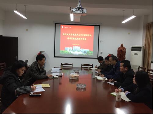 3月18日,安徽农业大学76net必赢线路检测中心副院长(主持工作)孙志农一行5人来我校调研交流硕士点申报与硕士生培养和外语教师职业发展等工作。76net必赢线路检测中心院长洪流主持交流会,相关人员参加了座谈交流。