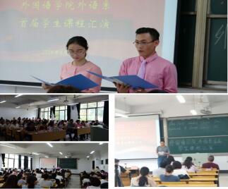 6月25日下午,76net必赢线路检测中心在秀山校区东教D108举办首届英语专业学生课程汇演。外语系全体教师、英语专业部分学生代表、以及学院其他系(部)教师代表汇聚一堂,共同欣赏首届学生课程汇演。76net必赢线路检测中心院长洪流和学院党委副书记、副院长黄宇弦莅临现场指导,副院长曹瑞斓亲自设计汇演宣传幻灯片。大学英语教学部一部主任周桂英和詹声斌老师,以及研究生英语教学部张靖主任担任汇演评委和颁奖嘉宾。