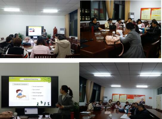 会议首先由郑维老师结合自己的课件演练了说课内容,随后大家纷纷发言,并展开热烈讨论。点评嘉宾从微观到宏观,细致详尽地指出讲课竞赛中需要注意的问题和方面,其中包括细读比赛要求、突出说课重点、准备双语版本教案、增强教学手段的吸引力等。与会的各位老师群策群力,提出许多中肯的意见和建议。