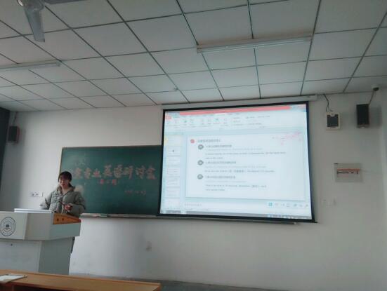 随后,来自翻译专业的新生陈恩然同学就冶金专业同学提出的有关论文写作流畅性的问题展开汇报。她从连接性状语这个切入点入手,展示了论文写作中连接性状语的实例,并与大家分享了自己的写作经验和翻译经验。