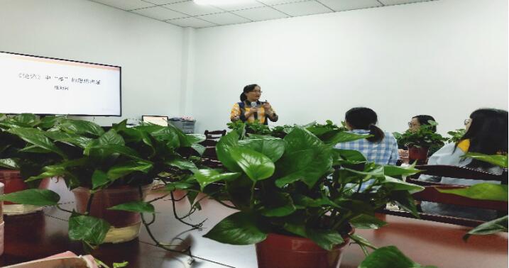 研讨会正式开始后,首先由庄新霞老师发言。她以《论语》中“孝”的思想内涵为主题进行报告,介绍了以“无违”、“忧疾”“敬”“色”“义”等为代表的六种《论语》中“孝”文化的思想内涵。她从自己在学习和生活的实践得到启发,并进行深度探索和思考,从而形成对“孝”的独特见解,以一种浅显易懂和诙谐幽默的方式向参会的师生进行解说,现场引起与会者的思想共鸣。在这个过程中,我院曹瑞斓老师联想到与自己的息息相关的生活,表达自己对“孝”的观点和看法,并提出创建学习国学经典--《论语》的双语学习小组的新颖想法。