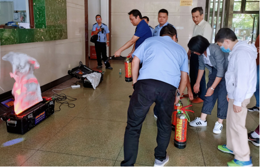 在学校消防人员的讲解下,学院党委书记黄宇弦、学院党委副书记、副院长、纪委书记陈庆林带头学习、示范、演练,各办公室人员分别尝试使用消防用具,了解灭火器的用法、灭火关键要领和灭火注意事项,大家的灭火能力得到提升。