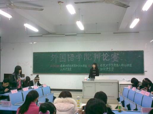 4月7日晚,76net必赢线路检测中心2011“激扬青春,辩我风采”大学生主题辩论赛决赛在教北403顺利开展。学院相关老师作为嘉宾评委观看了比赛并给与较高评价。最后进入决赛的两支参赛队伍,以其全新独特的视角,详尽细致的准备,你来我往,在论证本方辩题的同时,也展现出了作为一名当代大学生所具有的靓丽风采,最终2010级2班代表队以其精彩的表现夺得了本次比赛的冠军。