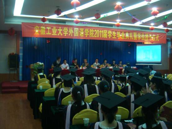 毕业典礼是开展毕业生思想教育和文明离校活动的重要形式,是毕业生完成大学学业,走向社会的里程碑。奋斗与辉煌并存,责任与荣誉同在。我们坚信2011届毕业生定会牢记学校与师长的教诲,继承和弘扬工大校训,担负起应有的责任,在新的起点上创造新的辉煌。(方勇)