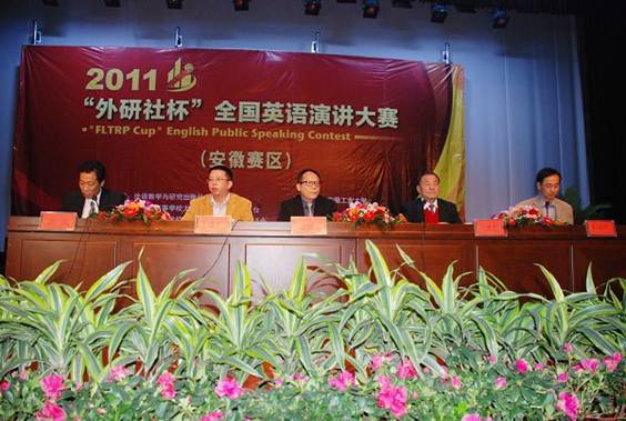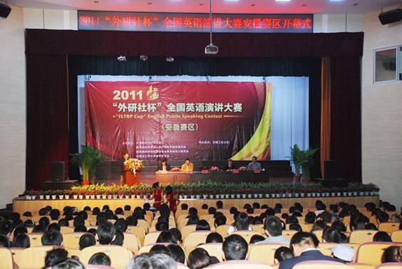 10月28日晚, 2011“外研社杯”全国英语演讲大赛安徽赛区复赛开幕式在东校区新大学生活动中心隆重举行。我校副校长葛芦生教授,安徽省大学外语教学研究会会长刘俊烈教授,外语教学与研究出版社华东信息中心主任王建平先生,全国英语演讲大赛安徽赛区评委团主席崔海健教授,以及我校76net必赢线路检测中心党政负责人出席了大赛开幕式。来自全省部分高校英语专业的领导、专家以及39所高校的115名选手参加了开幕式。76net必赢线路检测中心副院长洪流教授主持了开幕式。