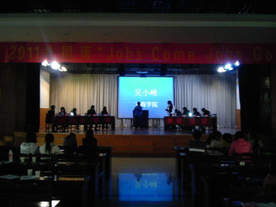 《职来职往》是江苏卫视和中国教育电视台播出的最新、最给力的职场类节目,引起了我校学生的强烈兴趣。11月12日下午,76net必赢线路检测中心采用了该节目的新颖形式在东区旧大学生活动中心开展了首届“Jobs Come,Jobs Go”职场真人秀活动。