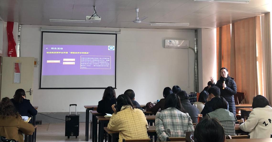 3月22日下午3点,76net必赢线路检测中心在佳山校区教一218室面向全院教师,开展了《智造英语》系列网课课程建设与成果交流专题报告,报告由76net必赢线路检测中心副院长陈琳主持。76net必赢线路检测中心院长曹瑞斓教授、大外二部陈木茵老师和万丽芳副教授依次从《智造英语》系列课程诞生的背景、建设构思、课程思政设计和实施、教学内容制作和更新、线上平台打造和运用、学习评价措施和区分度等方面展开汇报。