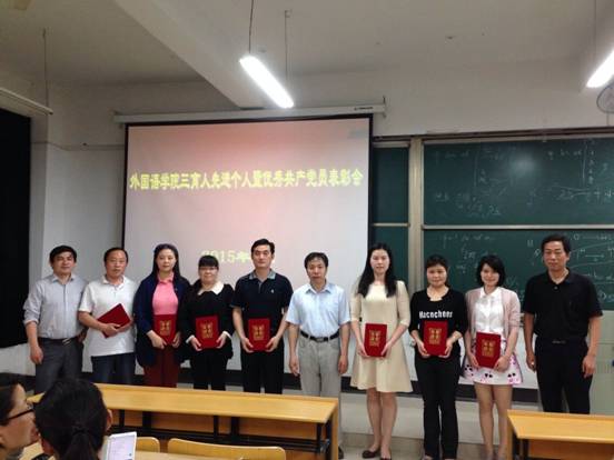 会上,宋洪生首先介绍了院三育人先进个人及优秀共产党员评选过程,并宣读了院三育人先进个人及院优秀共产党员的表彰决定。在此基础上,根据推荐票数及个人事迹,推荐曹瑞斓和刘金保为校三育人先进个人候选人,马永亮为校教职工优秀共产党员候选人,丁晶为校学生优秀共产党员候选人,外语系参加校“三育人”先进集体评选,大外一部党支部参加校先进教职工党支部评选,学生党支部参加校先进学生党支部评选。