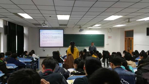 詹声斌老师从时政关键词入手,结合清明节背景,由浅入深过渡到课文主题。通过与学生的现场互动,为大家呈上一堂内容丰富、形式多样、气氛活跃的课堂教学活动。学校督导组刘爱萍老师、学院督导组潘耀西老师、学院副院长曹瑞斓等20余位老师一起旁听了公开课,并给予了高度评价。(撰稿:周家春 审核:曹瑞斓 洪流)
