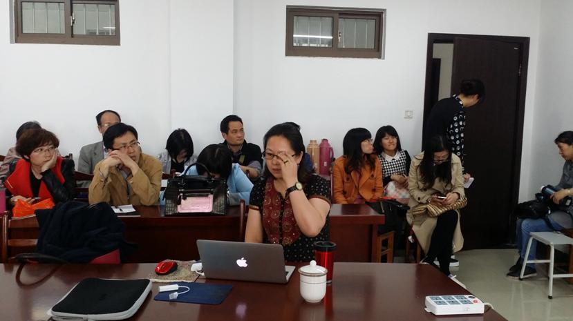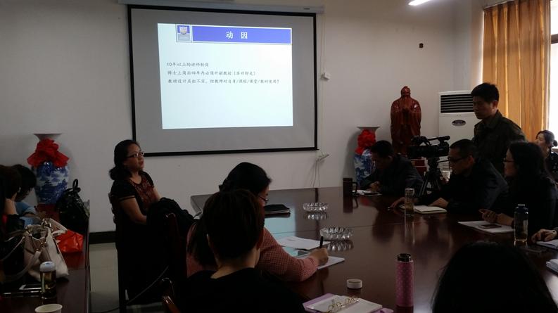 报告以问答的形式展开,陈桦教授先从南京大学 “三三制培养模式”入手,介绍了南京大学大学英语教学改革研究与实践,并结合我校大学英语教改工作,从课程设置、专门用途英语(ESP)课程教学等方面提出了意见及建议。陈教授还解读了我国“十三五”规划(教育篇)的核心要义是提高教育质量,并着重提出了教师是教学设计师,指出教学要有“法”,教无定法,贵在得法。她认为在时代、学生、教学内容等改变的大背景下“翻转式课堂”实质上是师生关系、教学观念、教学内容、教学时空的翻转;并以详实的视频资料,展示了她在口语课程实践教学中配音教学的成功经验。陈教授还就到会老师所提出的大学英语课程教材选用、大学英语四、六级考试发展前景、青年教师如何提升教研能力等问题一一做了详细解答。