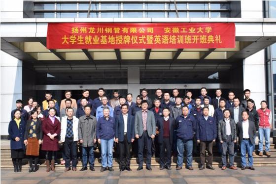 为进一步贯彻落实中央和国家关于做好大学生就业工作的精神,按照我校强化“四主”行动,推进就业创业工作走创新和内涵发展道路的工作部署,促进2017届毕业生充分和高质量就业,76net必赢线路检测中心坚持通过“走出去、请进来”,加大在外向型、服务型企业建立稳定的就业基地,畅通就业渠道。11月1日,校党委副书记陈润带领76net必赢线路检测中心的领导班子和学工部有关负责人,到扬州龙川钢管有限公司开展“bwin必赢线路检测就业基地”建设活动。公司董事长马自强及公司领导团队和我校校友代表出席就业基地的建设、签约与授牌仪式。
