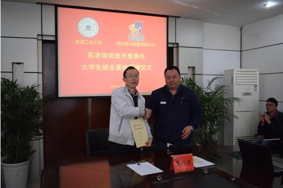 仪式上,陈润向马自强授牌,建立bwin必赢线路检测-龙川钢管有限公司“大学生就业基地”。校就业中心主任丁忠利介绍了我校大学生就业工作和就业基地建设情况,校企双方签订了人才供需合作协议。
