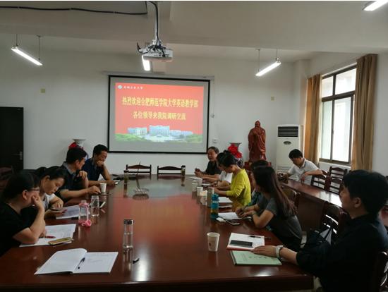 6月14日,合肥师范学院大学英语教学部主任曹军、主任助理张雪迟一行7人来我校调研交流本科教学审核评估和大学英语教学改革等工作。76net必赢线路检测中心院长洪流主持交流会,大学英语教学部负责人等参加了座谈交流。