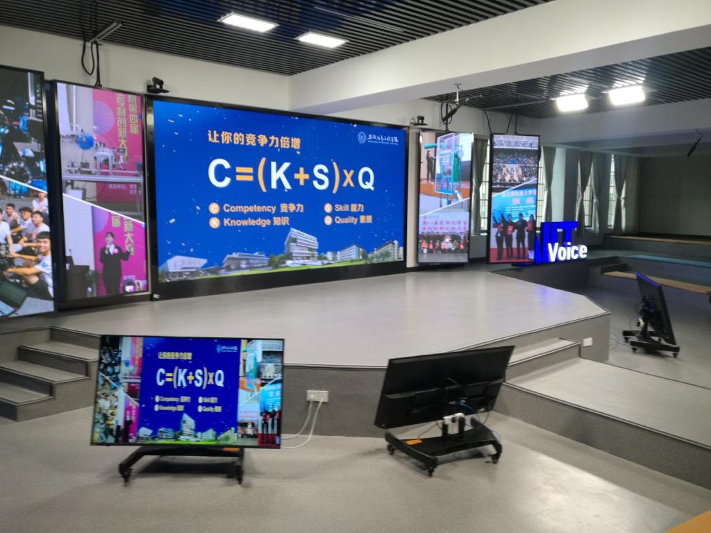 调研团一行首先前往安徽信息工程学院,参观了学校智慧教室的建设和使用情况,观看了智慧教学督导中心,以及从智慧教室细分出的标准型参与式教室、多屏研讨型讨论式教室、分组实践型项目式教室。调研团一行高度肯定了安徽信息工程学院在智慧教室建设方面的成效,切实感受到了科学技术给教育和学习带来的改变。曹瑞斓院长充分肯定了安徽信息工程学院在智慧教育方面所取得的成就。她指出,智慧教室打造了一个让教师有条件创新、学生有方式参与、师生有途径共同探索学习的新型教学空间。她强调,希望我院教师能够充分利用好智能教育平台,为智慧教学探索新场景,提出新思路,打开新方向,进一步提高人才培养效果。