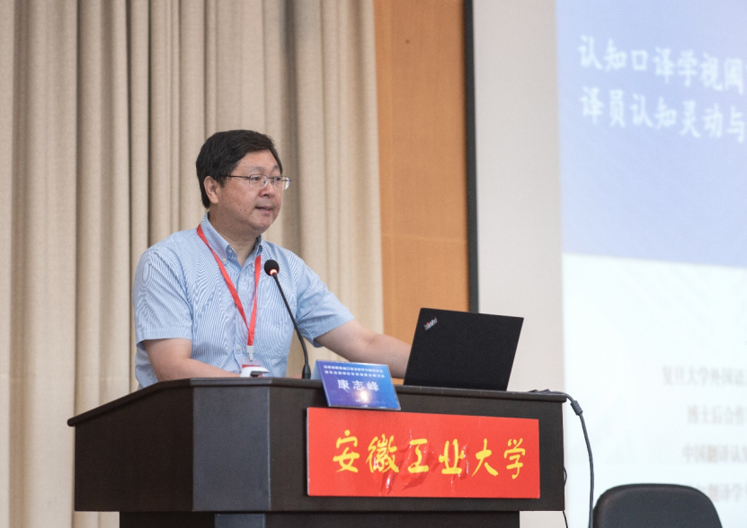 复旦大学外国语言文学学院教授、中国翻译认知研究会会长康志峰教授作了题为“认知口译学视阈下的学生译员认知灵动与译效研究”的主旨发言,介绍了认知口译学的溯源,结合认知口译学眼动实验,强调运用恰当的研究方法开展口笔译研究,阐述了理论与实践结合对口译实践与口译教学产生的积极学术价值。