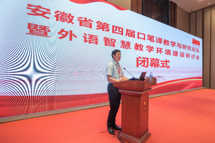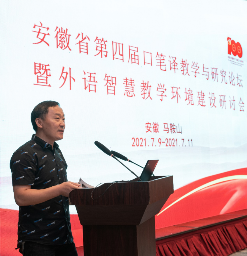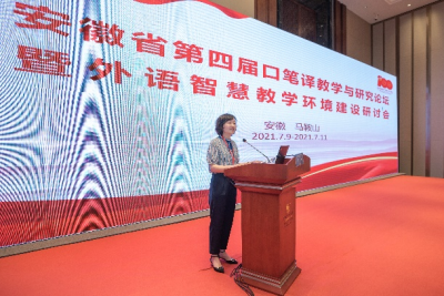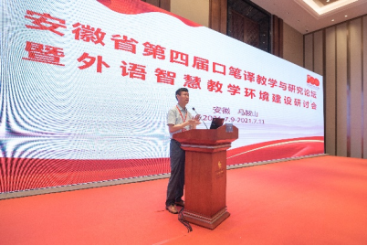 2021年7月10日上午,由安徽省外国语言文学类专业合作委员会和安徽省外国语言文学学会主办,安徽省外文学会翻译教学工作委员会和76net必赢线路检测中心承办,上海外语教育出版社、外语教学与研究出版社、上海凌极信息技术有限公司、安徽译创语言服务有限公司协办的安徽省第四届口笔译教学与研究论坛暨外语智慧教学环境建设研讨会在bwin必赢线路检测开幕。来自省内外的专家、学者和学生约150人参加本次大会。