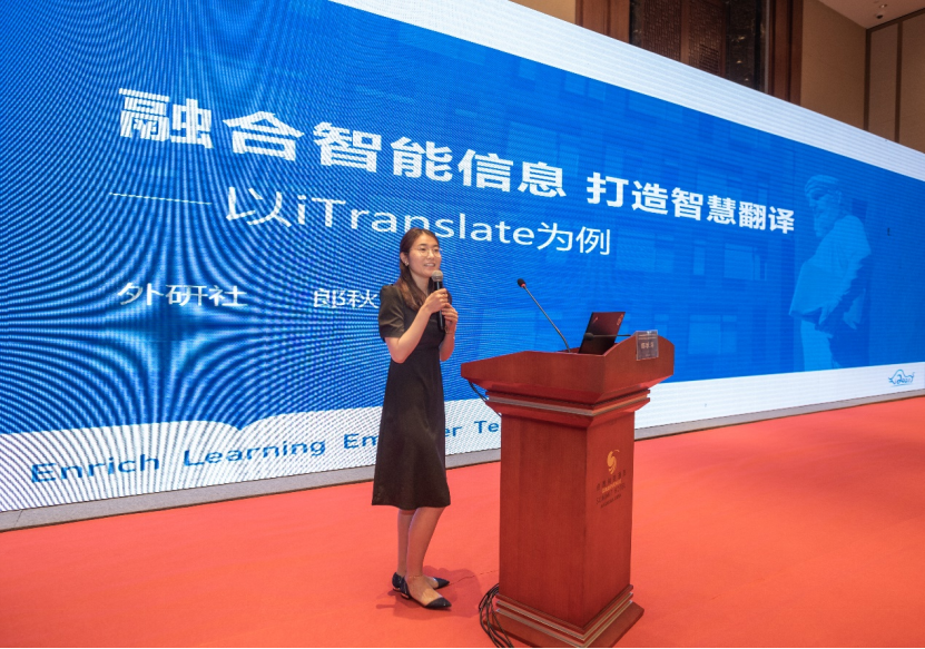 北京外研社——外研在线数字产品市场经理郎秋萍作了题为“融合智能信息 打造智慧翻译”的主旨报告,介绍了面向高校英语专业(翻译方向)、BTI/MTI师生,服务于CAT教学的一站式翻译教学与实训平台iTranslate,对于翻译教学具有很大的支持作用。