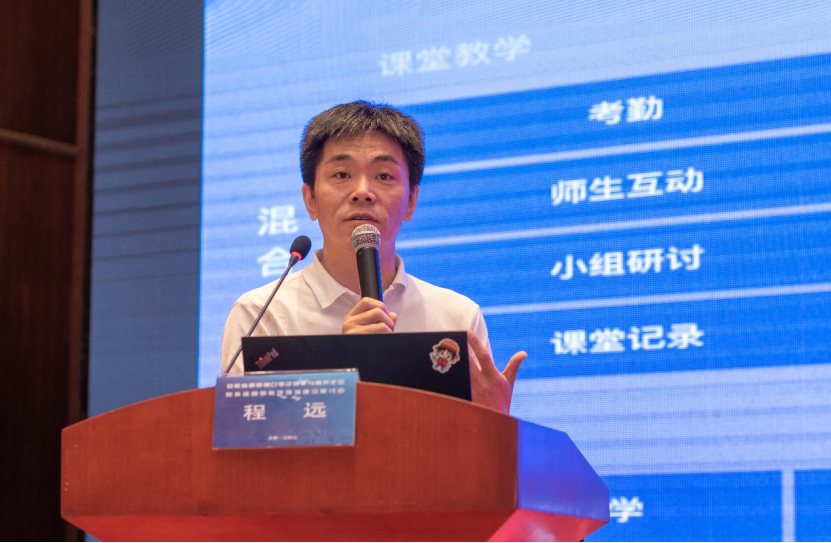智慧教学产品与解决方案体系总经理程远作了题为“外语智慧教学环境现状及未来”的主旨报告,指出智慧校园教学环境不受空间环境限制,用软件定义教室,支持课堂互动,合作学习,混合式教学,支持常态化教学质量评估。