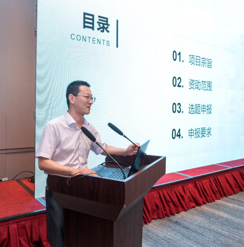 随后由安徽大学外语学院朱玉彬教授代表安徽教育出版社对外合作编辑部杨菁菁副主任作了国家社科基金专项“中华学术外译”项目申报合作交流,主要从项目宗旨、资助范围、选题申报以及申报要求四个方面分享了国家社科基金专项项目申报经验。