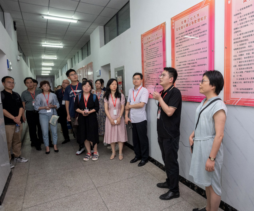 论坛结束后,安徽省外国语言文学学会朱跃会长亲临76net必赢线路检测中心语言学习中心现场参观指导,随行的有安徽译创语言服务有限公司施永双总经理,以及部分技术专家和与会代表。76net必赢线路检测中心陈琳副院长和语言学习中心李道兴主任接待。