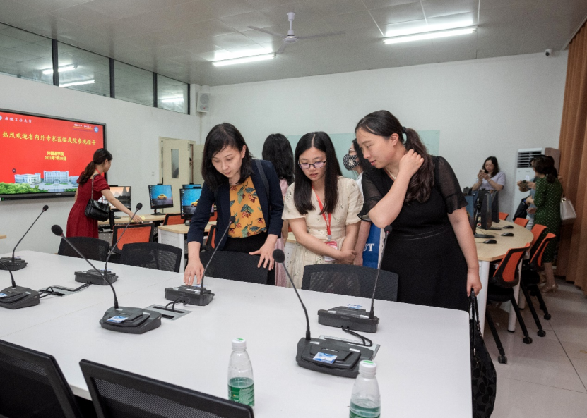 76net必赢线路检测中心语言学习中心位于风景秀丽的佳山校区,一期在第一教学楼六楼已建成现代化语言教学实验室6间。陈琳副院长简介了外院语言学习中心发展历程,带领大家依次参观了现代化云语音室、笔译实验室、商务英语/秘书学仿真实验室等。厂商和技术专家随后就TRADOS软件,以及现代化语音设备使用等进行了精炼简短的讲解和演示。虽然已近晚7点,大家依然毫无倦意,兴致盎然,就语言学习中心建设展开热烈交流和讨论。