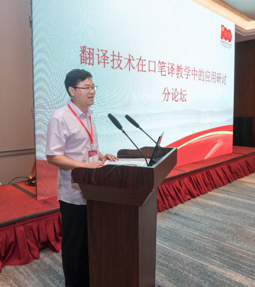 国务院学位委员会原委员,中国外文局原副局长兼总编辑,中国互联网新闻中心主任,中国翻译协会常务副会长,中国翻译研究院副院长,全国翻译专业学位研究生教育指导委员会主任委员黄友义在致辞中强调,我们对翻译人才的培养要服务国家大局和社会需求;在翻译人才培养中要拥抱技术,培养专业的语言服务人才;同时,还要大力加强外语智慧教学环境建设,推进教育治理方式变革,注重教学整体规划,提供全方位、个性化信息服务。