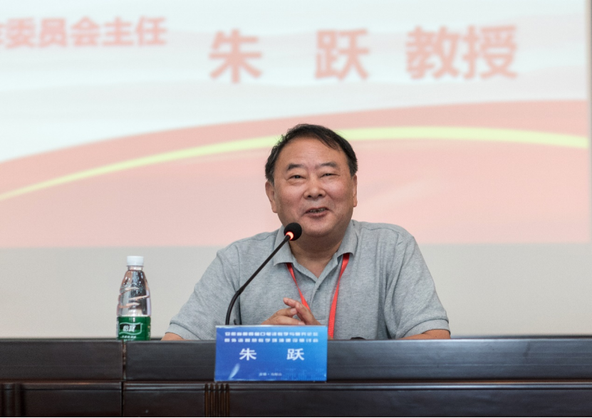 安徽省外国语言文学类专业合作委员会主任、安徽省外国语言文学学会会长、安徽大学朱跃教授首先致欢迎辞。他指出,在新文科背景下,翻译专业建设和学科建设要与信息技术密切结合,致力于培养高层次高水平人才,期待本次大会中大家碰撞出学术的火花。