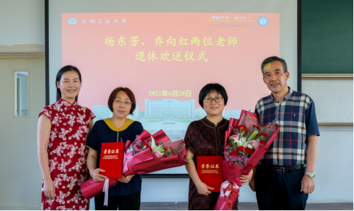 会上,学院为杨东芳、乔向红两位退休老师举行了欢送仪式。