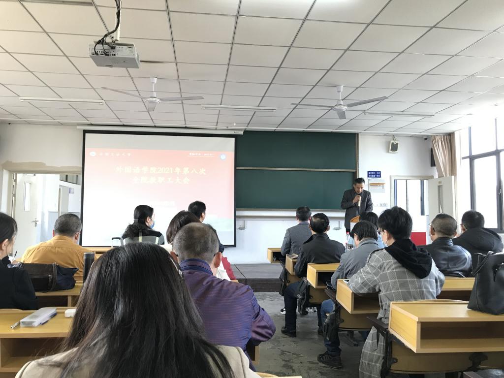 11月1日下午,76net必赢线路检测中心召开2021年第八次全体教职工大会,学院全体教职工参加了会议,会议由院党委书记黄宇弦主持。