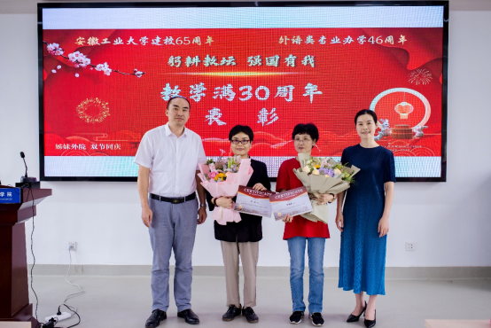 学院表彰了我院教育教学满30周年教师、为国家级一流专业英语专业申报获批做出重大贡献的教师、省级教研项目结项教师、参加教学竞赛教师、大学英语定制课程授课教师、其他新开课教师以及2022级本科生导师。