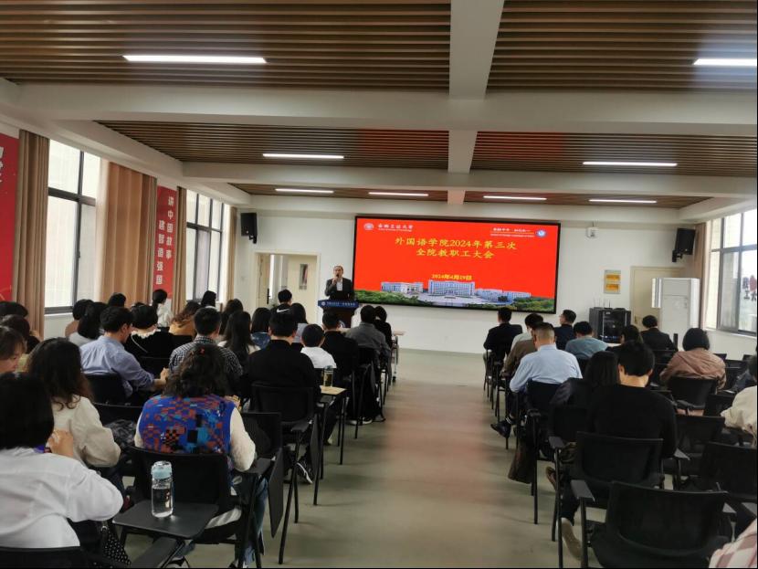 4月29日下午,76net必赢线路检测中心在教一401会议室召开2024年第三次教职工大会,会议由学院党委书记夏玉钦主持,学院全体教职工参会。
