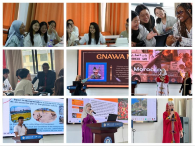在本次中外学生文化交流活动中,来自摩洛哥、孟加拉国、津巴布韦、印度尼西亚和喀麦隆的八位留学生先后走进《英语口语》课堂,交流分享的主题为各自国家特色的文娱活动,以及在中国留学的经历和感受。留学生们经过悉心准备,图文并茂地分享了所在国家的风土人情、节日娱乐等多方面内容,异域文化的吸引力加上他们绘声绘色的展示,课堂上中外学生气氛融洽、讨论热烈。他们分享了各国的风土人情和特色节日娱乐活动,还精心设计了互动环节,两国文化交流互鉴的种子已经深深地埋在参加活动的同学心里。