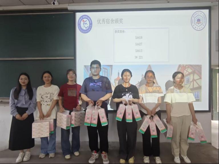 会议公布了4月份宿舍安全卫生检查结果,并对4间“优秀宿舍”进行表彰。张庆芳强调,宿舍是学生生活学习的重要场所,需持续落实“每日值日”制度,营造健康文明的居住环境。