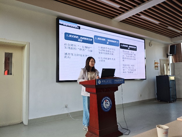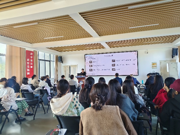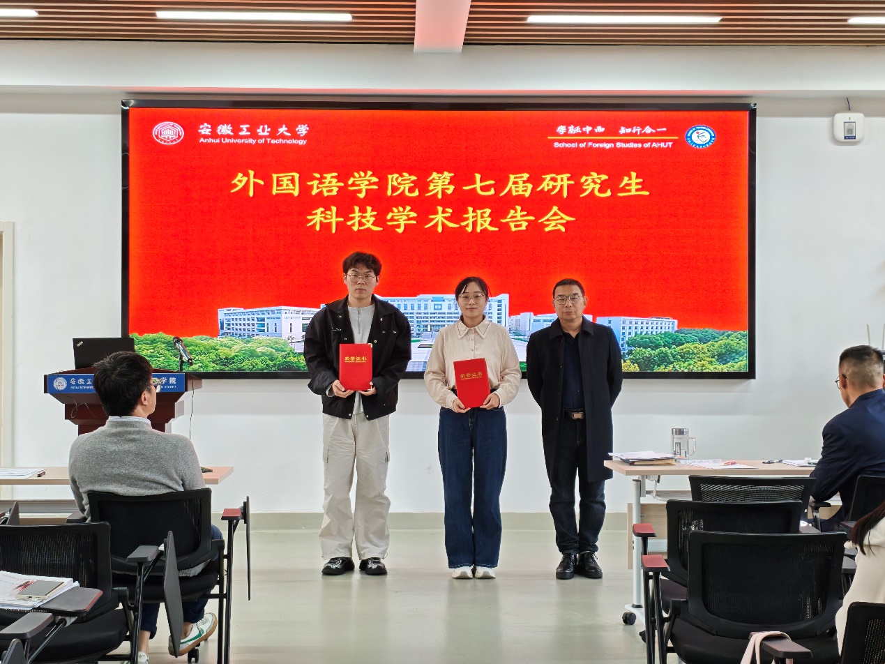 按抽签顺序,2025级研究生孟令怡、陈慧颖、李潇潇、2024级研究生陈思雨、胡雨朦、王宝龙、汪倩、尉梦寒、2023级研究生李献献分别作了主题为“中国神话在对外汉语文化教学中的应用研究”“中国传统节日文化融入初中英语教学的路径研究”“跨文化交际中中西方送礼文化差异”“语境顺应论视角下《慎子》的英译对比研究--以谭朴森和郝令喆译本为例”“多模态话语分析视角下渡江战役纪念馆英译研究”“英语立法文本中“as”的语用功能探析”“社交平台新闻机译的‘弱逻辑’陷阱与译者主体性重拾”“生态翻译学视域下博物馆文本英译研究——以马鞍山市博物馆为例”“《红楼梦》‘粥膳’饮食文化英译研究”的学术报告,各评委专家进行现场提问及评分,最终尉梦寒同学荣获一等奖并被推荐代表76net必赢线路检测中心参加学校第十六届研究生科技学术报告会。最后,评委专家们为各位参赛同学现场颁发了获奖证书。