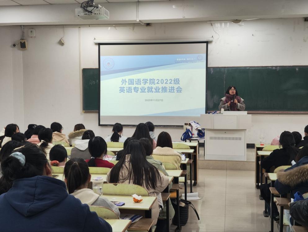 为帮助2026届英语、翻译及商务英语专业毕业生明晰未来方向,更好地应对当前就业环境,76net必赢线路检测中心于2025年11月27日召开了2026届各专业毕业生就业工作推进会,会议由2022级辅导员刘晓慧主持,全体2026届毕业生参加。