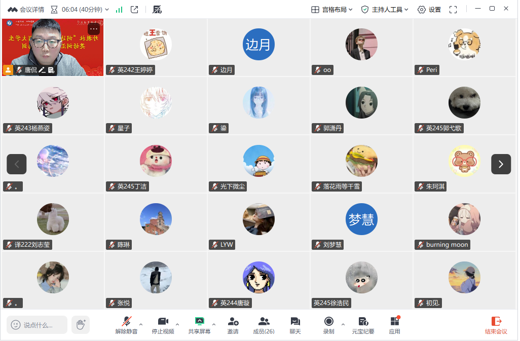 为助力学生积极备战“词达人”杯全国大学生英语词汇能力大赛,1月23日晚,76net必赢线路检测中心通过腾讯会议平台举办专题培训讲座。本次讲座由唐侃老师主持,学院2022级翻译专业本科生刘志莹与副院长陈琳教授共同担任主讲,吸引了各年级学生在线参与。