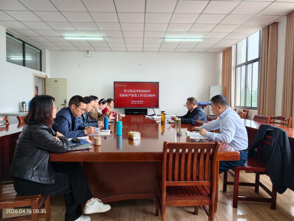 会议深入学习了习近平总书记关于全面从严治党的重要论述,传达了全国、全省教育系统全面从严治党工作会议暨深化教育领域腐败整治工作动员部署会议精神及学校2026年全面从严治党工作会议部署要求,通报了全省教育系统违纪违法典型案例,对学院2026年全面从严治党工作作了全面安排。