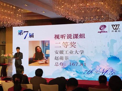 我校76net必赢线路检测中心青年教师赵萌菲作为安徽赛区的特等奖选手代表安徽参赛。经过三天激烈的授课和说课比赛,赵老师以扎实的基本功、精彩的课堂讲授和稳定的临场发挥赢得专家组的一致认可,最终获得全国总决赛视听说课组二等奖,这是我校参加该项赛事以来取得的最好成绩。