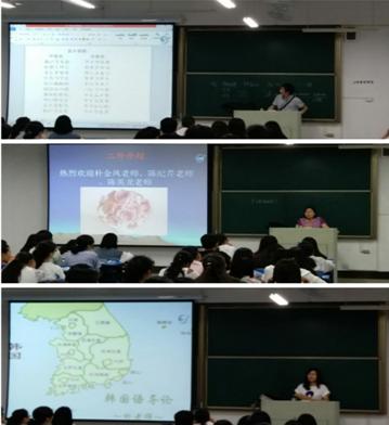 9月19日,76net必赢线路检测中心德语老师陈纪芹、韩语和俄语老师朴金凤及日语老师陈英龙在英语专业《专业导论》课上为2017级新生介绍德语、韩语、俄语、日语等二外语种,受到同学们的热烈欢迎。