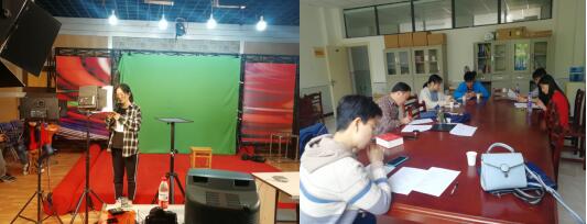 选手们经过指导老师的悉心指导及对作品的刻苦打磨与推敲,朗诵的技巧和水平有了很大的提升。4月28日上午,指导老师带领选手们前往专业录音棚内进行预录制,让选手提前适应录制环境,并以选手录音效果为准,对每组作品逐一录制比对,再次进行细心打磨。在此期间,指导老师严格要求,参赛选手们亦精益求精,力图将作品做的最好。我校参加本次大赛省赛的所有参赛作品在傍晚时分全部录制完成,达到了指导老师及选手们预期的效果。