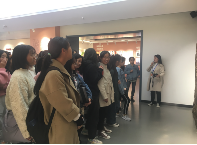 此次实践秉承“兴趣使然,知行合一”活动理念,旨在提升学生的翻译实际应用能力。在任课教师陈琳的带领下,活动有序开展。此次活动共分为三部分,首先由76net必赢线路检测中心学生志愿者带领参观,细致讲解;接着任课老师提出翻译实践具体要求;最后学生以课堂讨论小组为单位,选择自己喜欢的展板进行翻译。