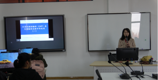 为了增强翻译专业一年级学生对于翻译技术和计算机辅助翻译的理解,2019年12月12日,76net必赢线路检测中心在佳山校区第一教学楼604笔译模拟实训室举办了题为“SDL Trados在CAT项目流程中的应用”的讲座。本次讲座由上海文化贸易语言服务基地翻译技术高级培训师黎梦蝶担任主讲。
