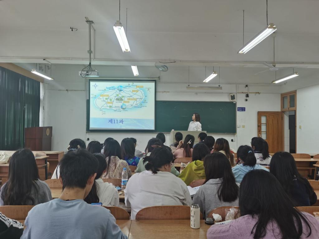 本次思政示范观摩课的主题内容围绕“济州岛”主题展开。任课教师对此次课程思政内容进行了精心准备,教学内容生动充实、教学环节紧凑,授课过程中精心设计思政点,通过对济州岛文化的介绍,使学生了解济州岛自然、人文、文化的同时,将我国相关文化因素有机融合到教学内容中去,激发学生的文化认同。同时,注重学生话语表达能力和思考能力的培养。譬如,通过对济州岛方言的讲解,让学生思考我国方言有哪些,及其文化传承和特点,更好了解本国文化,从而加强民族文化认同和自豪感。学生积极性与课堂参与度很高,课程气氛和学习效果良好。