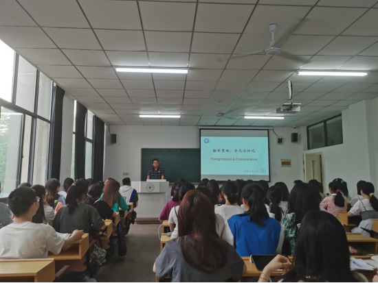 本次课程以翻译策略中的异化与归化(foreignization & domestication)为主题。第一节课上,唐侃老师首先向同学们介绍异化与归化这一对翻译策略的理论来源、哲学背景以及定义,然后他通过大量翻译实例引导学生翻译并对给定翻译进行评述,使学生充分理解异化与归化的概念以及在翻译中决定异化或者归化策略的因素。唐老师从课程思政的角度,引导学生深入探讨异化归化翻译策略与传播弘扬中华文化的关系,引导学生充分思考自己作为祖国未来翻译者身上担负的传播弘扬中华文化的重要使命。