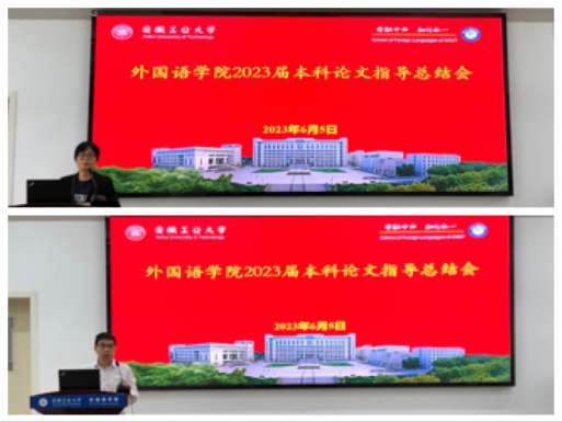 76net必赢线路检测中心2023届英语专业、翻译专业、文秘专业毕业生论文撰写、指导及院级答辩工作已经全面有序完成,在毕业设计指导尾声阶段,举行此次总结会。总结会前夕,学院以线上问卷形式收集了指导教师们的意见和建议,为总结本届毕业论文指导经验和解决问题奠定了扎实基础。本届指导老师积极交流指导经验,反思遇到的各类问题,如论文选题优化、论文格式进一步修订、论文写作教学改革、答辩环节完善优化等,为后续毕业设计指导工作积累了宝贵经验。