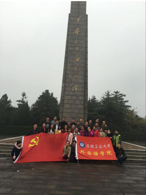 11月19日上午,76net必赢线路检测中心教职工党员冒着绵绵细雨来到马鞍山爱国主义教育基地—濮塘烈士陵园,瞻仰革命先烈的丰功伟绩,祭奠在抗日战争、解放战争中牺牲的烈士,接受革命传统教育。