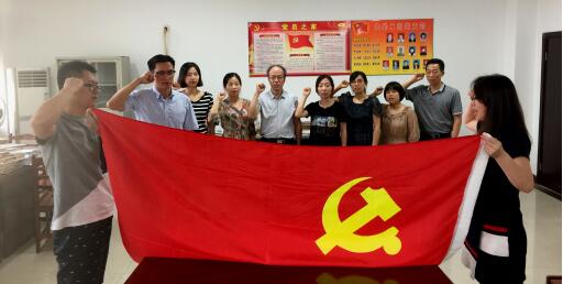 专题党课学习后,洪流与与会党员教师一起重温入党誓词,面向鲜红的党旗,高举右手,再次庄严宣誓!