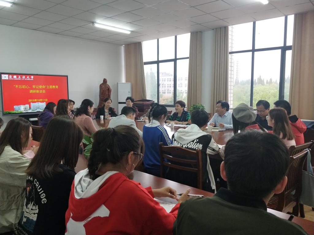 10月11日校纪委书记潘淑琴作为校纪委办党支部成员与纪委办党支部党员老师们共同深入基层,与76net必赢线路检测中心秘书学171班学生对接,召开“不忘初心、牢记使命”主题教育调研座谈会,校主题教育督导组组长唐忠,审计处和纪委办负责同志陪同调研,76net必赢线路检测中心党委书记黄宇弦、院长曹瑞斓、辅导员和秘171班同学参加了座谈。